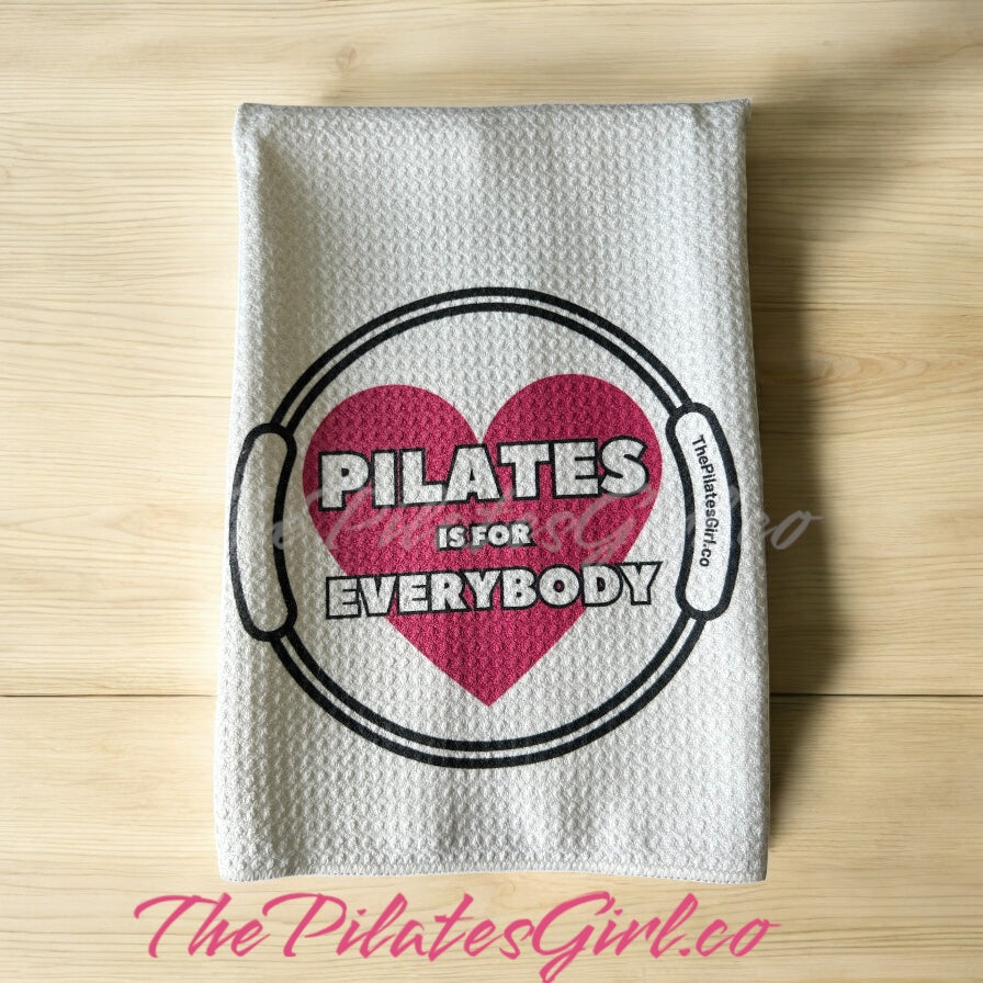 "Pilates is for Everybody pink heart towel"Pilates instructor gifts, Pilates studio, Pilates enthusiast, Pilates reformer, Fun Pilates towel.