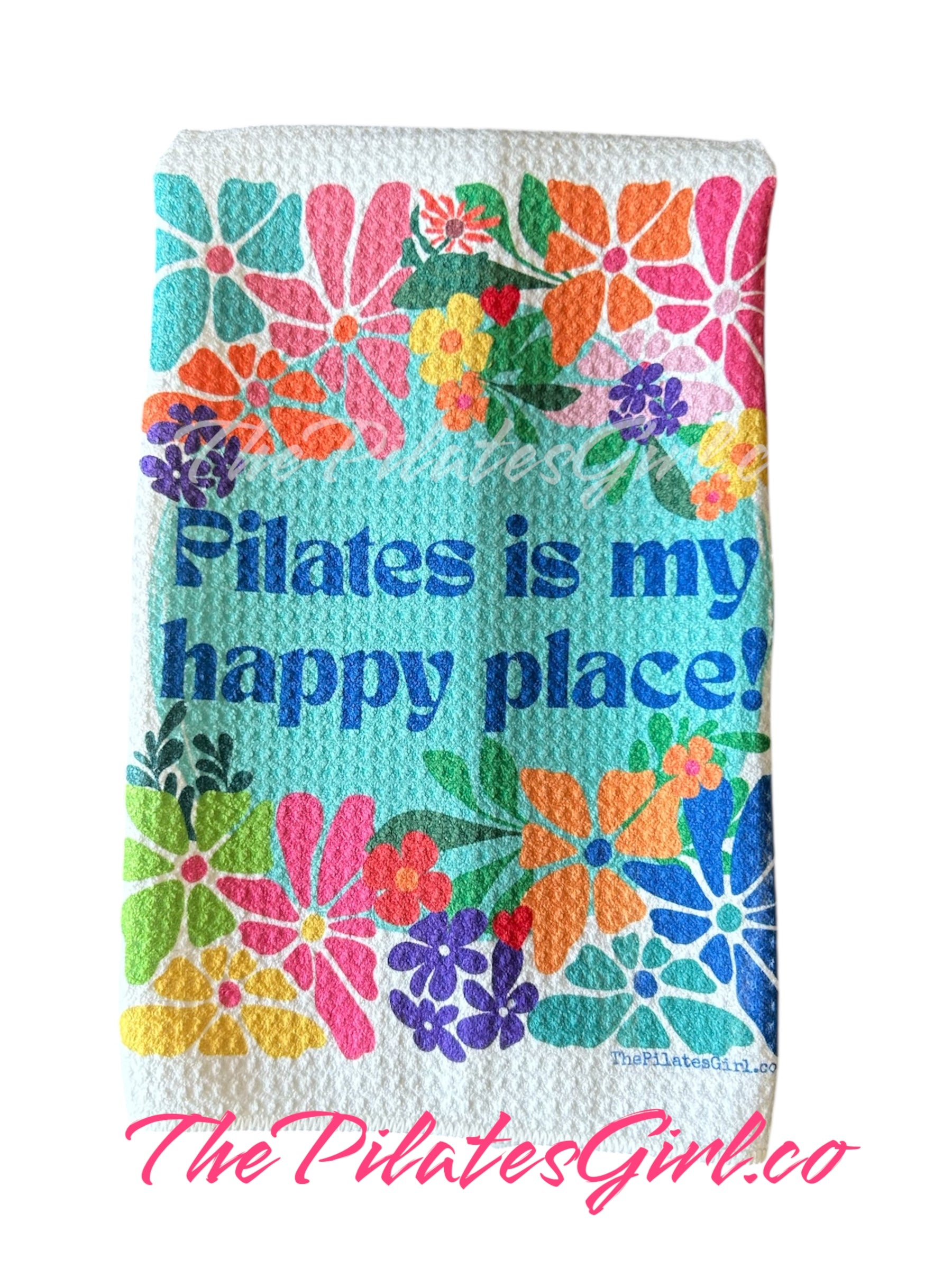1- 16" x 24" Pilates is my happy place waffle weave towel