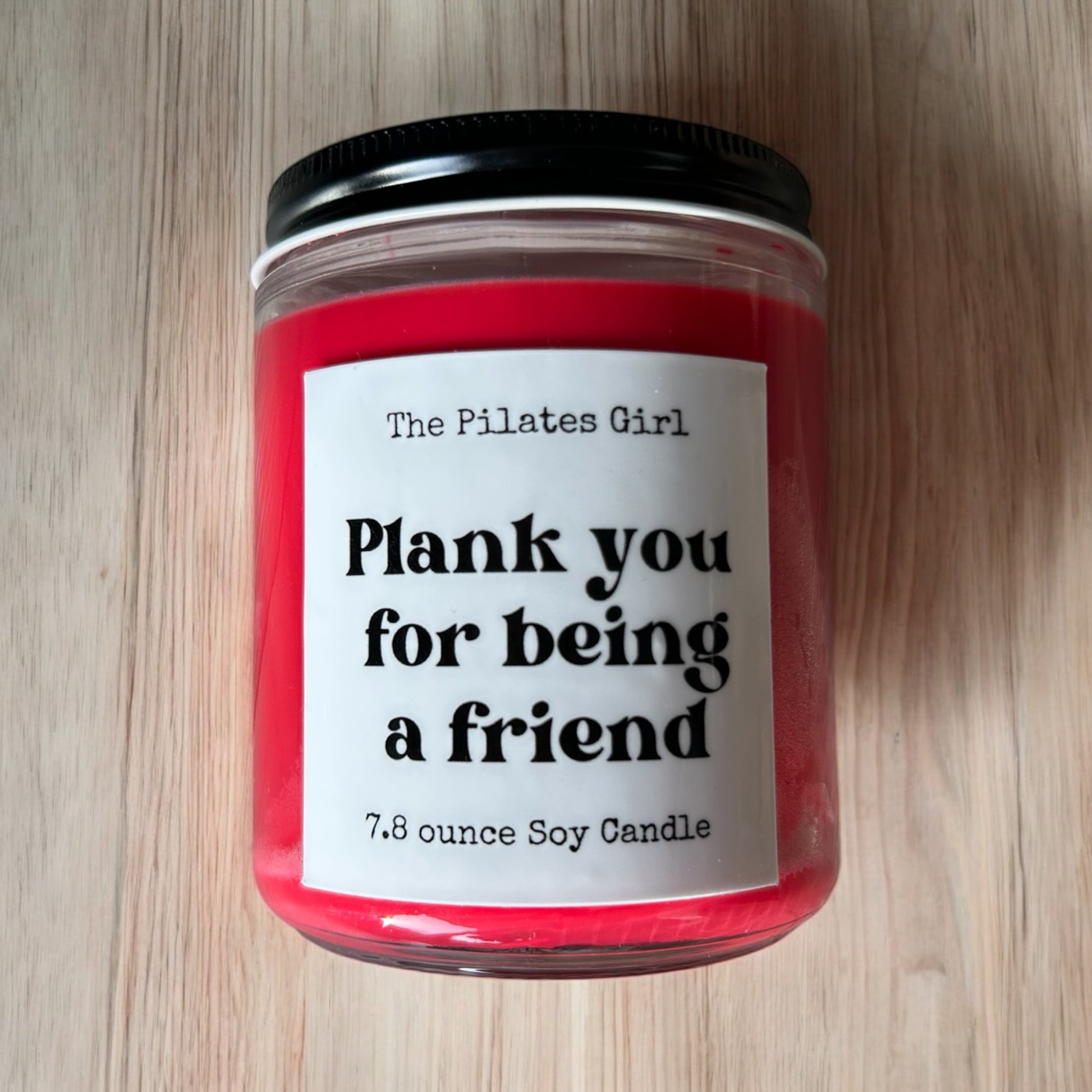 Plank you for bring a friend candle, Pilates candle, fitness gifts, pilates soy candle, pilates gifts, plank you candle